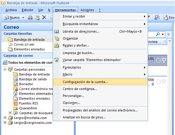 - Inicie Outlook, y en el menú Herramientas, haga clic en Configuración de la cuenta.