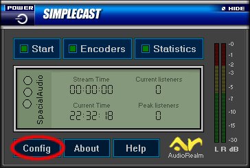 En la pantalla principal del programa, ir al panel de configuración (click en botón Config abajo a la izquierda) y cambiar las siguientes secciones: